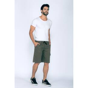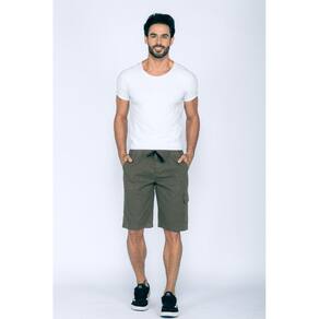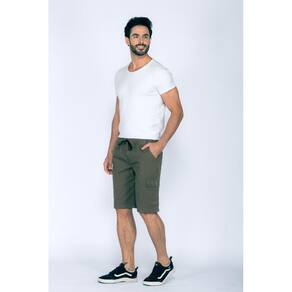 Bermuda cós elástico de sarja.