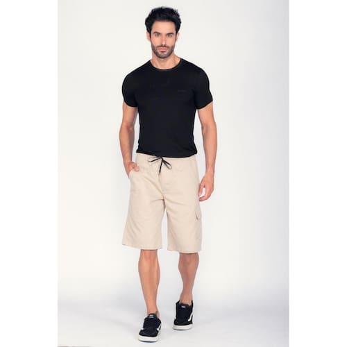 Bermuda Macaw 7851 Bege Elástico Sarja [F075] - Bege - G