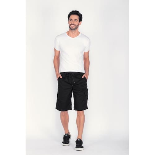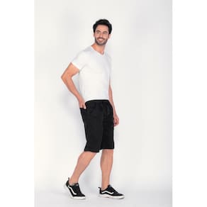 Bermuda cós elástico de sarja.