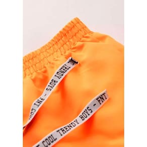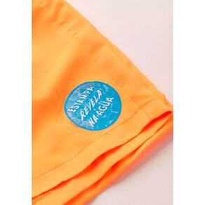 Tem modelagem tradicional, estampa rotativa, cós de elástico e cordão de amarrar.