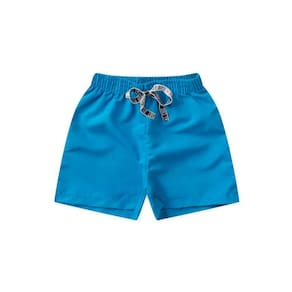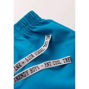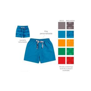 Tem modelagem tradicional, estampa rotativa, cós de elástico e cordão de amarrar.