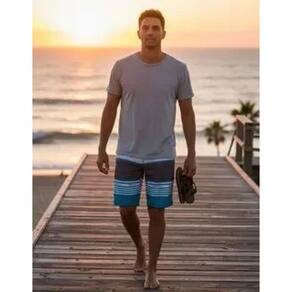 Bermuda d'água Masculina ideal atividades ao ar livre e prática de esportes aquáticos. Combina com Camisetas básicas e chinelos para um look casual. Ideal para o dia dia e também para ir a parai e piscinas. Tamanho 42 Fechamento frontal com zíper e botão Cos com passante para cinto Tecido leve e de secagem rápido Estampa conforme imagens.