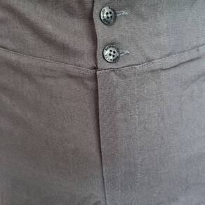 O design clássico inclui bolsos laterais funcionais e fecho com zíper e botão, garantindo praticidade e estilo.