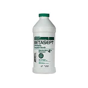 Descrição do Produto Gluconato de clorexidina 4% em uma base altamente viscosa para lavagem cirúrgica das mãos, lavagem das mãos por profissionais de saúde, preparação pré-operatória do paciente e desgerminação geral da pele. Produz uma boa espuma, com uma fragrância agradável. Benefícios do produto Não contém tintas ou corantes que possam causar uma reação alérgica. Ingredientes Ingredientes ativos: gluconato de clorexidina (CHG). Outros ingredientes: esfoliante cirúrgico Purdue Betasept 4%. Sugestões Nota especial Avisos Isenções de responsabilidade:1. Oferecemos produtos de marca nacional que são produzidos de acordo com os padrões de fabricação estabelecidos pelos reguladores a preços baixos todos os dias. Não use produtos não comprovados e sem marca, que podem representar sérios riscos à sua saúde.