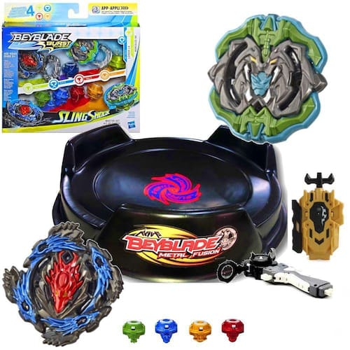 Vem com 2 tops completos de Beyblade Burst e 4 pontas de desempenho adicionais. Os bladers podem testar o desempenho do seu top em batalha com qualquer um dos 4 tipos de pontas de desempenho: ataque, resistência, defesa e equilíbrio. Os Bladers podem misturar e combinar os componentes incluídos para tentar encontrar a melhor combinação de Beyblade Burst! As pontas de desempenho do Slingshock têm recursos de trilhos e são convertidas do modo Battle Ring para o modo Slingshock.