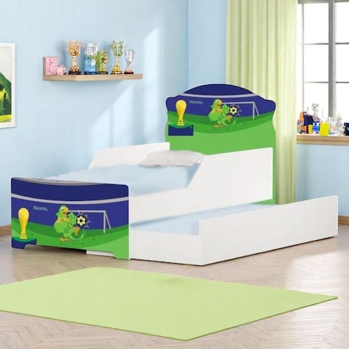 Proporcione noites tranquilas com a Bi Cama Infantil Kmcb Cor Futebol, ideal para o descanso e a diversão das crianças. Com cama auxiliar, oferece um espaço extra para acomodar outra criança com praticidade. A proteção lateral aumenta a durante o sono e as brincadeiras, enquanto a estrutura em madeira reforçada de reflorestamento garante resistência no uso diário. O adesivo em vinil resistente com tema de futebol deixa o quarto mais lúdico e atrativo para os pequenos. É uma opção funcional para quartos infantis em ambientes internos residenciais.