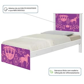 A Bicama Bibox Juvenil Barcelona Adesivada Carruagem Princesa é belíssima e conta com um design funcional, que ocupa pouco espaço no ambiente.
