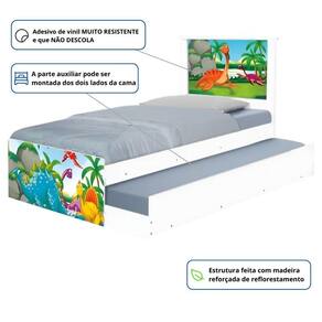 Bi Cama Juvenil Zap com Cabeceira Dinossauros no Lago - Branco