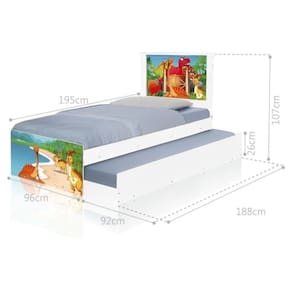 Bi Cama Juvenil Zap com Cabeceira Terra dos Dinossauros - Branco