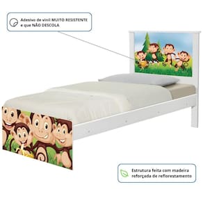 A Bicama Bibox Juvenil Barcelona Adesivada Safari Macaquinhos é belíssima e conta com um design funcional, que ocupa pouco espaço no ambiente.