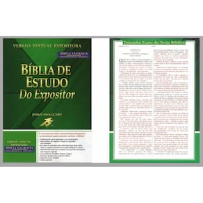 Com texto bíblico na nova Versão Textual Expositora,a Bíblia de Estudo do Expositor foi desenvolvida para ajudar a todos que desejam entender melhor as Sagradas EscriturasCada versículo dos sessenta e seis livros da Bíblia contém comentários exclusivos escritos por Jimmy Swaggart,renomado teleevangelista pentecostal da década de 1980,que auxiliam na compreensão do texto bíblicoEsta é uma Bíblia de estudo singular,pois tem o estilo de Bíblia amplificada,em que cada termo bíblico vem seguido da explicação,não havendo a necessidade de se procurar os significados e comentários em notas de rodapéPublicada pelo Ministério de Jimmy Swaggart,a obra será distribuída com exclusividade,no Brasil,pela Sociedade Bíblica do BrasilRecursos:Explicações na maioria das passagensTexto bíblico em negrito e notas do expositor em marrom,notas do expositor ao final de cada frase ou palavra da Escritura Material elaborado em consulta com grandes estudiosos das línguas originais,Concordância temática,Artigos Diversos auxílios para o estudo bíblico Mapas coloridosDimensoes:24x18x4 cm