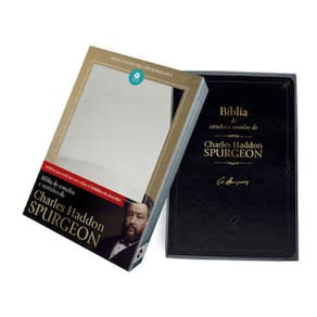 Descrição Bíblias de Estudo / Veja a seguir os detalhes de cada opção: ==> Bíblia de Estudos e Sermões de Charles H. SPURGEON (Cód.: TG041 / Cor: Preto) Capa: Luxo / Couro / Preta Formato: 4 x 18 x 25 cm Peso: 1,20 kg Número de Páginas: 1664 Tamanho da Letra: Grande Versão Bíblica: Nova Versão Transformadora (NVT) Mais de 800 comentários de autoria de Charles H. Spurgeon Introdução aos livros bíblicos contendo uma seção de exercícios para estudo e discussão 16 sermões completos de Charles H. Spurgeon Plano de leitura bíblica em um ano Acompanha uma linda caixa Fita de cetim para marcar as páginas Esta Bíblia é resultado de um trabalho de pesquisa e leitura nos mais de 3500 sermões produzidos por Spurgeon ao longo de seus mais de ministério pastoral. Apesar de escritos há mais de um século, os temas se mantêm relevantes e a profundidade das reflexões desafiam o leitor atual ao apego às Escrituras Sagradas, à devoção e ao compromisso com Deus.
