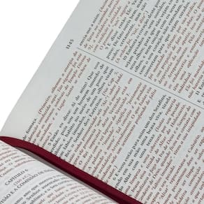 Acabamento Premium: Sinta o toque elegante e durável da capa em couro bounded na cor vinho, sinônimo de qualidade e devoção.