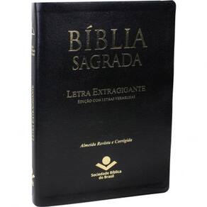 Com tamanho de letra extragigante e palavras de Jesus impressas em vermelho, este modelo da Bíblia Sagrada oferece mais conforto na leituraTradução:Almeida Revista e Corrigida,Idioma:Português,Tamanho da Letra:Extragigante,Capa:Preta,Acabamento:Beiras douradas,Couro bondedFormato:Grande,Indice:Sim,Dimensoes:24x18x3,5 cm