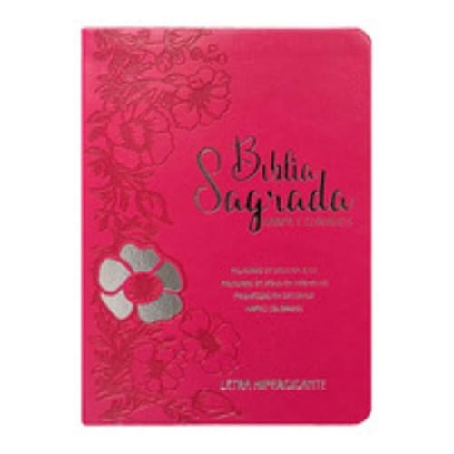 Bíblia hipergigante arc full color c/harpa pu luxo c/ índice dourada - Floral dália pink