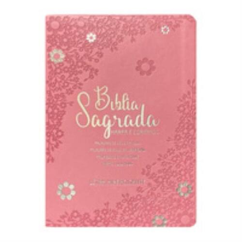 Bíblia hipergigante arc full color pu luxo dourada - Floral margarida rosa