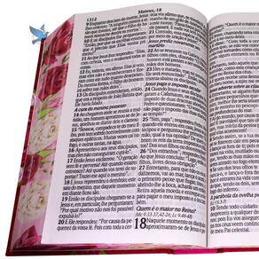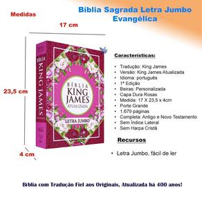 Bíblia Sagrada traduzida por King James, versão King James Atualizada. Capa Dura Rosas. Porte grande, possui 1679 páginas. Como recurso letra Jumbo, que facilita a leitura. Bíblia Completa com Antigo e Novo Testamento.