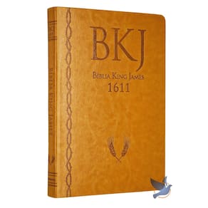 Bíblia Sagrada traduzida por King James, versão King James Fiel 1611. Capa Flexível em Material Sintético PU, cor Mostarda. Porte Médio, Ultrafina (Slim) ampliada, fácil de transportar na bolsa. Possui 758 páginas e páginas extras para anotações. Com Fita Marcadora de Páginas. Não é versão de Estudo. Bíblia Completa com Antigo e Novo Testamento.