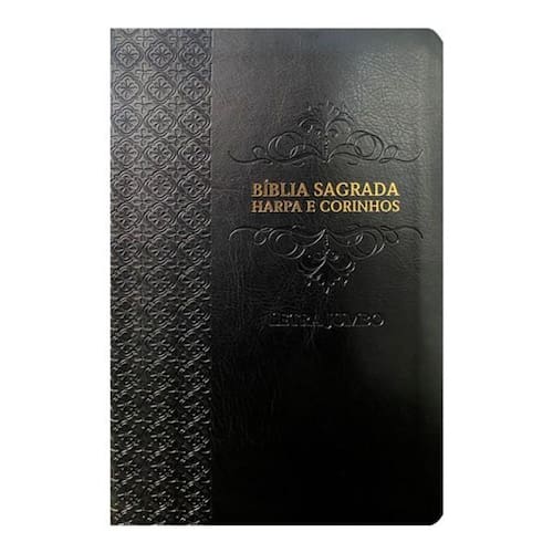 Bíblia sagrada traduzida por joão ferreira de almeida, versão almeida revista e corrigida. Capa flexível em pu luxo, modelo arabesco, cor preta. Como recurso dessa bíblia, possui a letra jumbo, tamanho de fonte ampliado, o que torna a leitura mais fácil e confortável. Com a harpa cristã avivada e corinhos inclusa, é possível acompanhar os louvores durante os cultos ou cerimônias. Possui 1.920 páginas da bíblia + harpa. Palavras de deus em azul e as palavras de jesus estão em destaque em vermelho, no novo testamento.