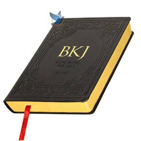 Tradução: King James Versão: King James Fiel 1611 BKJ Idioma: português Letra: Extra gigante 7 Edição Beiras:douradas Capa Flexível em Material Sintético PU, Cor Preta Medida: 17 X 24,2 X 3cm 1.369 páginas Porte Grande Completa: Antigo e Novo Testamento Sem Índice Lateral Sem Harpa
