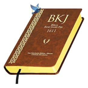 Bíblia Sagrada traduzida por King James, versão King James Fiel 1611. Capa flexível em material sintético PU, cor Marrom. Porte Grande, possui 1.248 páginas. Letra Padrão. Com fita marcadora de páginas. Não é versão de Estudo. Bíblia Completa com Antigo e Novo Testamento.