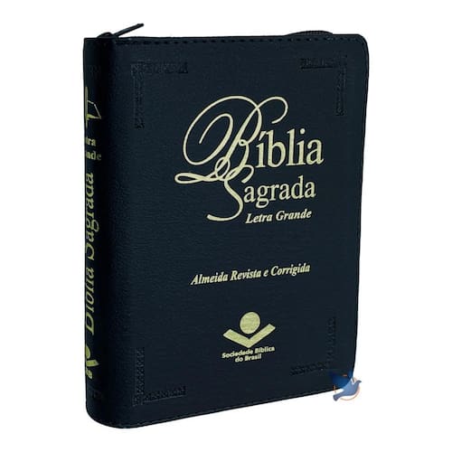 Bíblia Sagrada, traduzida por João Ferreira de Almeida, versão ARC Almeida Revista e Corrigida. Capa em Material Sintético Preta, Com Zíper. Possui índice na lateral. Porte pequeno, 1.664 páginas, letra grande. Incluso diversos recursos como: notas e referências bíblicas, mapas, tabela de pesos e moedas, leitura para dias especiais.