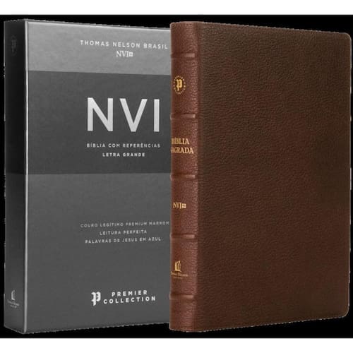 DESFRUTE DE UMA BÍBLIA COM O MÁXIMO DE LUXO E DURABILIDADE As Bíblias Premier Collection foram confeccionadas para elevar a experiência da leitura bíblica através de acabamentos especiais e materiais nobres. A capa em couro autêntico possui extrema maciez, um convite ao manuseio; cada página, por sua gramatura superior combinada à fonte Leitura Perfeita, proporciona uma experiência elevada para conforto visual. Todas essas características tornam as Bíblias dessa coleção um item essencial e um presente especial que durará de geração em geração. Características: Texto revisado da Nova Versão Internacional (NVI23). Palavras de Jesus em azul. Texto em duas colunas. Milhares de referências cruzadas. Fonte Leitura Perfeita em letra grande, uma tipologia exclusiva Thomas Nelson que integra os melhores avanços em tipografia de Bíblias modernas. Bordas estendidas de 12 cm para proteger as folhas. Formato que proporciona fácil manuseio e praticidade. Miolo costurado. Douração trilateral com cores sobrepostas (vermelho-dourado). Três fitilhos marcadores largos. Cuidadosamente embalada em caixa resistente de duas peças e envolvida em um elegante papel protetor.