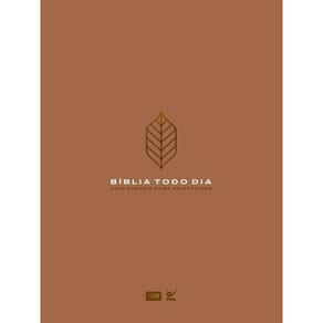 A Bíblia Todo Dia é um convite ao estudo criativo, agradável e profundo das Escrituras. Você poderá usá -la como desejar, pois foi projetada para que a leitura se adapte às suas necessidades. Inovadora, você encontrará, para cada dia, porções do Antigo Testamento, do Novo Testamento e de Salmos, além de um espaço para anotações ou imagens, de acordo com a sua criatividade. Você nunca leu a Bíblia assim antes! O seu relacionamento com o Senhor certamente se aprofundará, e a Bíblia Todo Dia será a sua melhor companheira nesta jornada! Desfrute com alegria seu tempo com o Senhor e sua Palavra!