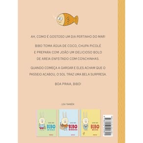Hoje é dia de praia! Pegue o seu baldinho, o protetor solar e prepare-se para curtir um fim de tarde com o Bibo. Da autora do best-seller Gildo. Nesta nova edição do livro em capa dura, o coelho e sua família passam uma tarde à beira-mar, com direito a água de coco, picolé e bolos de areia! Uma hora vem uma onda bem grande, e Bibo leva um susto. Ainda bem que o João corre para ajudar. Depois começa uma garoa fina, mas o sol não vai embora. Quem adivinha o que aparece no céu?! A autora Silvana Rando criou a coleção Bibo pensando nas riquezas do dia a dia que esquecemos depois de grandes. O coelho, sua família e seus amigos vivem situações cotidianas com as quais todos os pequenos leitores vão se identificar e que despertarão boas lembranças nos leitores nem tão pequenos assim. O texto curto e interativo e as ilustrações vivas e bem-humoradas de Silvana são um convite a repetidas leituras. Além de Bibo na praia , conheça também o livro inédito Bibo na escola e as novas edições de Bibo no sítio e Bibo no mercado . Indicado para leitores a partir de 0 ano.