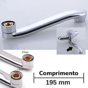 Bica Horizontal Longa para Monocomando cozinha Cromado 19,5 Cm