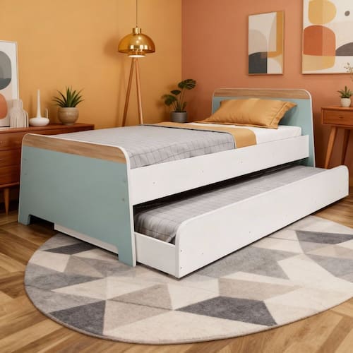 A bicama Lorenza, possui um design diferenciado com detalhe amadeirado e acabamento em perfil PVC soft cabeceira e peseira, proporcionando maior conforto ao toque. É uma ótima opção para espaços pequenos, pois possui uma cama auxiliar com 4 rodízios permitindo rapidez e agilidade na movimentação. Produto Montado: Sim Acompanha Cama Auxiliar: Sim Acompanha Colchão: Não Altura do Estrado até o Chão: 27,5 cm Ambiente Principal: Quarto Cama Auxiliar Acompanha Colchão: Não Cama Auxiliar com Rodízio: Sim Cama Auxiliar Suporta Até (kg): 120 kg codigo_ean: 7900288267733 Complexidade da Montagem: Média: pode ser montado por mais de uma pessoa e/ou necessite de maior conhecimento para montagem Cor: Verde Cor do Produto: Verde Escala de Brilho: Fosco Extensível: Não Itens Inclusos: 1 Bicama, Kit Ferragens e Manual de Montagem Linha ou Coleção: Lorenza Manual de Montagem e Instalação: https://product-hub-prd.madeiramadeira.com.br/577030491/documents/8d5081a7-38ee-405f-9187-64e61eb3f53b328056336321760964624292.pdf Marca: MOVELBRAS Material do Estrado: Eucalipto Material Principal: MDP Necessita Montagem: Sim Origem do Produto: Nacional Permite a Utilização de Cama Auxiliar: Sim Peso: 43 kg Possui Baú: Não Possui Gavetas: Não Possui Pés: Não Possui Portas: Não Possui Prateleiras: Não Possui Rodízio: Sim Recomendações de Uso, Manutenção e Limpeza: Pano levemente umedecido com álcool 70% Rodízio com Trava: Não Sistema de Montagem: Parafusos, pregos e cavilhas. Tamanho do Colchão Indicado (L x C): 188x88x14cm Tamanho do Colchão Indicado Cama Auxiliar: 188 X 88 X 14 Tipo de Cama: Bicama Tipo de Colchão: Solteiro Tipo de Estrado: Fixo