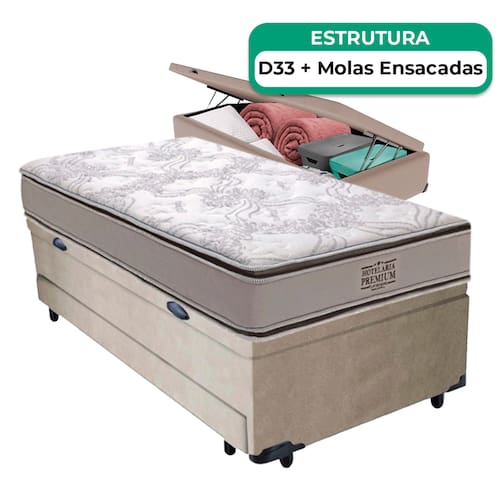 Bicama Baú Solteiro Colchão Four Season Molas Vstore 88x188 - Bege