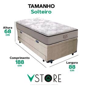 A tecnologia que a sua casa merece está na V-Store! A tecnologia e funcionalidade que sua casa merece estão aqui! O Conjunto Colchão Dallas e Bicama com Cama Auxiliar e Baú oferece conforto, praticidade e estilo. O colchão, com molas ensacadas, espuma D33, Euro Pillow e tecnologia EPS, proporciona excelente suporte, durabilidade e conforto térmico. A bicama, com cama auxiliar e baú espaçoso, otimiza o espaço do seu quarto, oferecendo suporte confortável para visitas e armazenamento extra para organizar o ambiente. Revestida com tecido sintético resistente, garante durabilidade e facilidade de manutenção. Característica Do Colchão: Modelo: Four SeasonMarca: V-StoreTamanho: SolteiroDimensões: 88x30x188 (Largura x Altura x Comprimento)Conforto: MédioSistema: Molas EnsacadasPillow: Pillow TopPeso Máximo recomendado: 150 kg (Por pessoa)Proteções: Antiácaro, antialérgico, antifungo, antimofoGarantia: 12 Meses (Espuma) / 10 anos ( Conjunto de Molas Ensacadas)Característica Da Base: Marca: V-StoreModelo: Bicama com BaúCor do Box: BegeTamanho: SolteiroDimensões: 88x44x188 (Largura x Altura x Comprimento)Estrutura: MadeiraPeso máximo recomendado: 150 kg (Por Pessoa)Altura do Box: 38 cmAltura dos Pés: 6 cmAltura total: 44 cmMedida Cama Auxiliar: 88x44x188 (LxAxC) cmGarantia: 12 Meses (Estrutura e Estofamento) / 3 Meses (Tecido)Selo Ecologicamente CorretoAtenção:- Antes de finalizar sua compra, recomendamos que verifique se as dimensões do produto são adequadas para serem transportadas pelos elevadores, portas, escadas e corredores de sua residência. Ressaltamos que não nos responsabilizamos pelo transporte do produto por meios específicos, como escadas, guinchos ou içamentos.- É possível que hajam leves variações de cor de acordo com o dispositivo que está sendo utilizado como smartphones, computadores, monitores e outros.