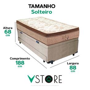 A tecnologia que a sua casa merece está na V-Store! A Cama Box Baú 3 em 1 da V-Store é a solução ideal para otimizar seu espaço e oferecer mais praticidade. Ela combina cama box, baú de armazenamento e cama auxiliar, perfeita para quem precisa de flexibilidade e organização no quarto. O colchão Victory Solteiro, com molas ensacadas, EPS para durabilidade e proteções contra ácaros e alergias, garante noites de sono confortáveis. A base revestida com tecido sintético é resistente e de fácil manutenção. Com capacidade para 150 kg por pessoa e garantia de 12 meses, essa cama versátil une conforto, funcionalidade e sofisticação para o seu dormitório.Característica Do Colchão: Modelo: VictoryMarca: V-StoreTamanho: SolteiroDimensões: 88x30x188 (Largura x Altura x Comprimento)Conforto: MédioSistema: Molas EnsacadasPillow: Euro PillowPeso Máximo recomendado: 150 kg (Por pessoa)Proteções: Antiácaro, antialérgico, antifungo, antimofoGarantia: 12 Meses (Espuma) / 10 anos ( Conjunto de Molas Ensacadas)Característica Da Base: Marca: V-StoreModelo: Bicama com BaúCor do Box: BegeTamanho: SolteiroDimensões: 88x44x188 (Largura x Altura x Comprimento)Estrutura: MadeiraPeso máximo recomendado: 150 kg (Por Pessoa)Altura do Box: 38 cmAltura dos Pés: 6 cmAltura total: 44 cmMedida Cama Auxiliar: 88x44x188 (LxAxC) cmGarantia: 12 Meses (Estrutura e Estofamento) / 3 Meses (Tecido)Selo Ecologicamente CorretoAtenção:- Antes de finalizar sua compra, recomendamos que verifique se as dimensões do produto são adequadas para serem transportadas pelos elevadores, portas, escadas e corredores de sua residência. Ressaltamos que não nos responsabilizamos pelo transporte do produto por meios específicos, como escadas, guinchos ou içamentos.- É possível que hajam leves variações de cor de acordo com o dispositivo que está sendo utilizado como smartphones, computadores, monitores e outros.