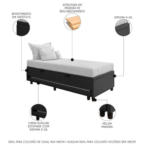 Conteúdo da Embalagem: 1 Base de cama com auxiliar.