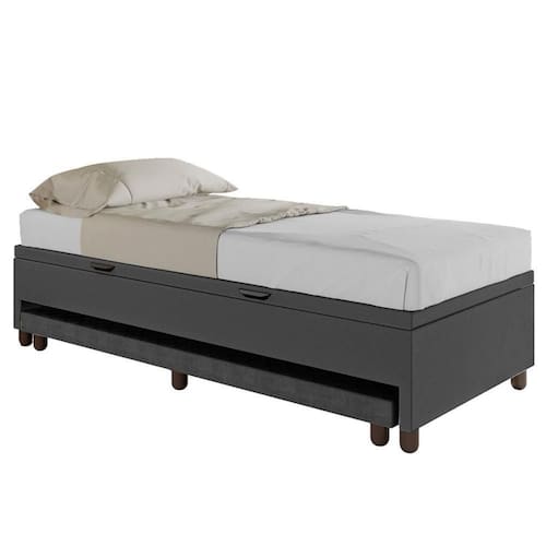 Seu design inteligente incorpora um baú espaçoso, ideal para armazenar roupas de cama e outros itens, mantendo o ambiente organizado. A presença de dois pistões a gás e puxadores em plástico é um diferencial que facilita o acesso ao compartimento de armazenamento. A Cama Auxiliar, estofada com espuma D-26 trazendo mais conforto para hospedar visitantes, dispensa o uso de colchão, sem comprometer o espaço disponível. Os pés elevados em madeira não apenas conferem uma proteção extra contra a umidade, mas também contribuem para a durabilidade do produto e a saúde dos usuários. O arco na parte traseira da base garante uma fixação segura do colchão. Optar por esta base Cama Box é uma decisão inteligente que reflete o cuidado com a qualidade do sono e a eficiência espacial no Quarto.