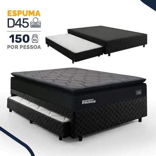 A base box com cama auxiliar embutida é a solução ideal para receber visitas ou otimizar ambientes, suporta até 100kg por pessoa, oferecendo praticidade e funcionalidade no dia a dia.