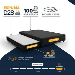 A cama auxiliar em espuma D28 firme ortopédica garante bom suporte e suporta até 80kg por pessoa, com estrutura reforçada para uso seguro, estável e eficiente.