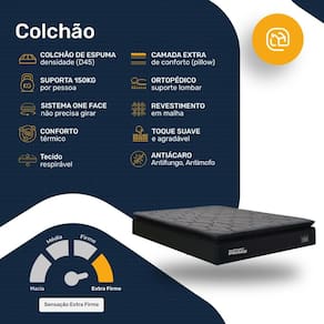 - Tipo de conforto: Extra-Firme (Ortopédico);