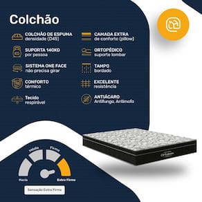 - Tipo de conforto: Extra Firme (Ortopédico);