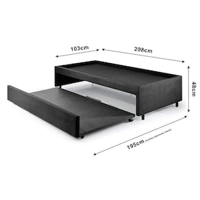 Bicama para dois colchões sendo o colchão superior Solteirão 96x203 (sem limite altura) e colchão auxiliar solteiro de 88x188 (com até 26cm de altura).