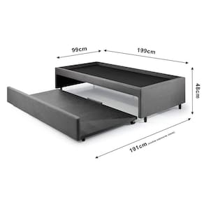 Bicama para dois colchões de Solteiro com medidas de 88x188 cm com até 26cm de altura (limite de altura apenas para cama auxiliar).