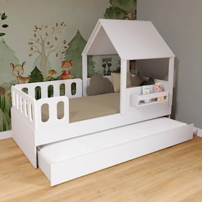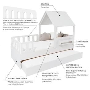 Diferenciais: Auxiliar com 4 rodízios, MDF Melamina 15mm, Estrados em Madeira Maciça, Casinha com Telhado, Grades Anatômicas (Todas as Grades são Removíveis)