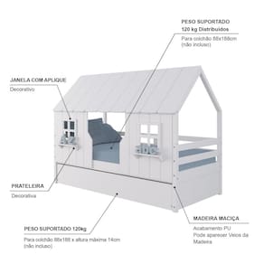 Diferenciais: Auxiliar com rodízios, Casinha e Telhado com fechamento em MDF, 02 Janelas e Prateleira Decorativa