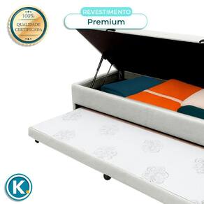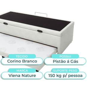 Bicama Com Baú Solteiro Viena Nature Branco 88x188 Colchão Queen com 28cm de altura, oferecendo conforto elevado e visual moderno Revestido em poliéster resistente, com toque agradável e fácil de manter