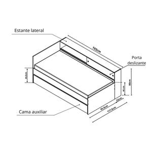 A bicama é uma ótima opção para quartos pequenos, pois permite acomodar duas pessoas. Possui 4 rodízios na cama de baixo permitindo rapidez e agilidade na movimentação. O módulo lateral que acompanha a bicama, possui um compartimento ideal para guardar os itens mais utilizados. Sua porta de correr facilita o uso e deixa o ambiente mais organizado. Produto Montado: Sim Acompanha Cama Auxiliar: Sim Acompanha Colchão: Não Altura do Estrado até o Chão: 3 cm Ambiente Principal: Quarto Cama Auxiliar Acompanha Colchão: Não Cama Auxiliar com Rodízio: Sim Cama Auxiliar Suporta Até (kg): 120 kg codigo_ean: 7900288266675 Complexidade da Montagem: Média: pode ser montado por mais de uma pessoa e/ou necessite de maior conhecimento para montagem Cor: Branco Cor do Produto: Branco Escala de Brilho: Fosco Extensível: Não Itens Inclusos: 1 Bicama, Kit Ferragens e Manual de Montagem Manual de Montagem e Instalação: https://product-hub-prd.madeiramadeira.com.br/488095987/documents/bea25541-49c6-4a7d-b866-1155dcb0e3ec3279224363217607281519786.pdf Marca: MOVELBRAS Material do Estrado: Eucalipto Material Principal: MDP Necessita Montagem: Sim Origem do Produto: Nacional Permite a Utilização de Cama Auxiliar: Sim Peso: 37,5 kg Possui Baú: Não Possui Gavetas: Não Possui Pés: Não Possui Portas: Não Possui Prateleiras: Não Possui Rodízio: Sim Recomendações de Uso, Manutenção e Limpeza: Pano levemente umedecido com álcool 70% Rodízio com Trava: Não Sistema de Montagem: Parafusos, pregos e cavilhas. Tamanho do Colchão Indicado (L x C): 188x88x14cm Tamanho do Colchão Indicado Cama Auxiliar: 188 X 88 X 14 Tipo de Cama: Bicama Tipo de Colchão: Solteiro Tipo de Estrado: Fixo