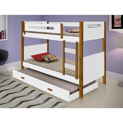 Bicama De Criança Infantil Solteiro Com Cama Auxiliar Heloisa - Branca E Mel - Cor: Branco Bicama Infantil Solteiro Com Cama Auxiliar Heloisa - Branca E MelA Beliche Heloísa é ideal para quem busca conforto em pouco espaço. Ela é produzida em MDF 15mm, com acabamento Pintura UV verniz-brilho, e pés em madeira maciça.Tipo: BelicheModelo: HeloísaCor: Branco e Mel Garantia: 90 diasProduto DesmontadoMaterial 100% MDFPés em madeira maciçaPintura UV Verniz BrilhoNão acompanha colchãoMedidas Beliche:Altura: 150cmLargura: 95cmComprimento: 200cmMedidas Cama Auxiliar:Altura: 20cmLargura: 189cmComprimento: 91,5cmATENÇÃOIMAGENS MERAMENTE ILUSTRATIVAS REALIZADO EDIÇÃO, PODENDO HAVER UMA PEQUENA VARIAÇÃO DE COR DEPENDENDO DE CADA TELA OU MONITOR.Bicama de CrianÃa Infantil Solteiro com Cama Auxiliar Heloisa - Branca e Mel Marca: Baby Mobilia