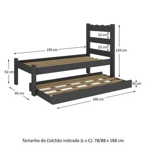 Colchões: Não acompanha. Indicado tamanho 78/88x188cm.