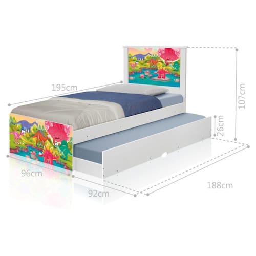 A Bicama Bibox Juvenil Barcelona Adesivada Dinossauros Coloridos é belíssima e conta com um design funcional, que ocupa pouco espaço no ambiente.
