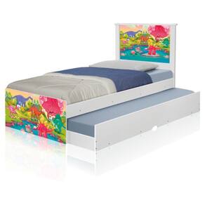 Bicama Bibox Juvenil Barcelona Adesivada Dinossauros Coloridos com 2 Colchões - Branco